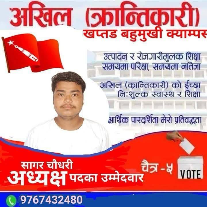 कैलालीको खप्तड बहुमुखी क्याम्पसको स्ववियु सभापतिमा अखिल क्रान्तिकारीका चौधरी निर्वाचित