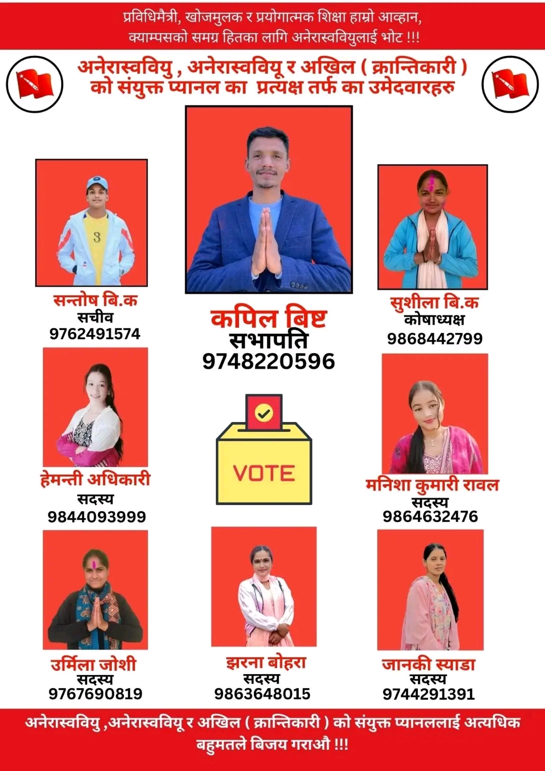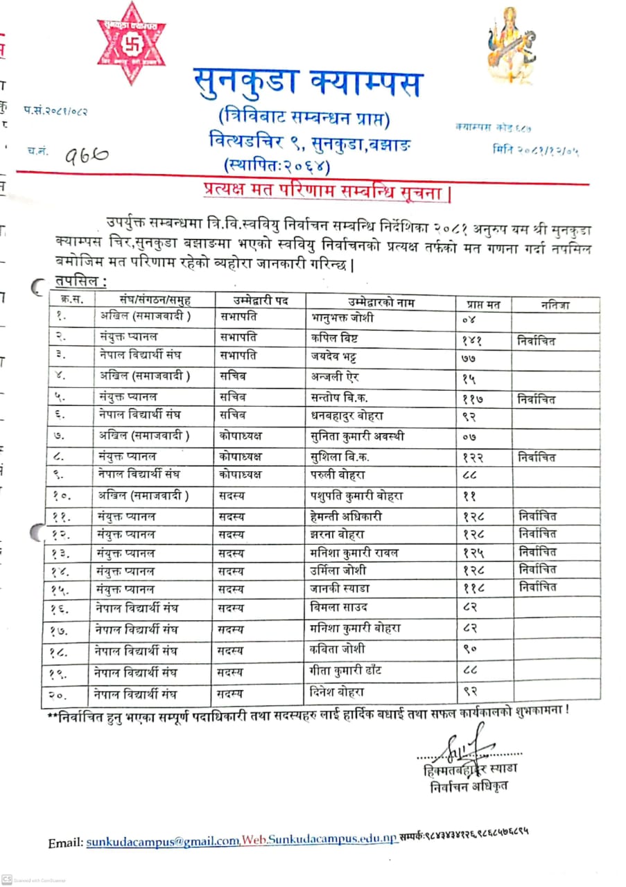 सुनकुडा क्याम्पसमा संयुक्त प्यानल नै निर्वाचित , सभापतिमा विष्ट