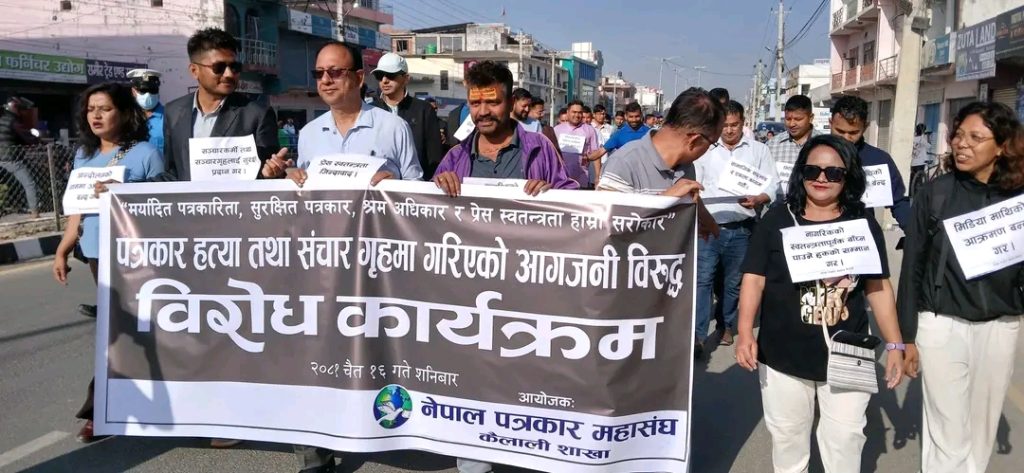त्यस्तै कैलालीको अन्य ठाउँमा पनि पत्रकारहरूले प्रदर्शन गरेका छन् ।