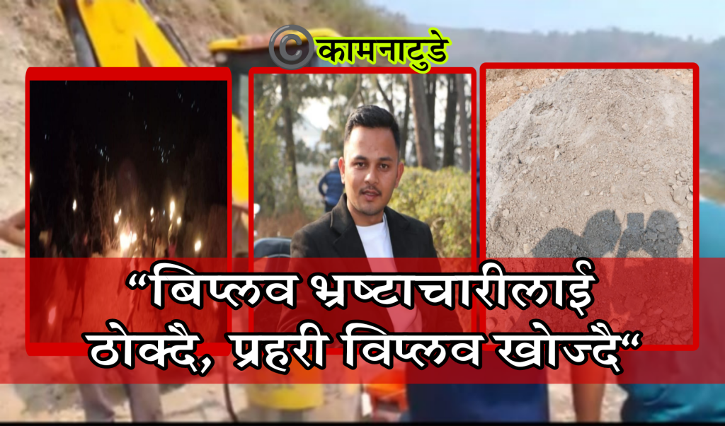 अनुगमनका क्रममा नेता भरत मल्ल सि कमल थापा सि लगायतका नेताहरु सडकमा पुग्दा सिमेन्टमा बालुवा हुनुपर्ने ठाउँमा माटाे मिसावट हुँदै काम गरेको पाईएकाे छ । अनुगमनकर्ताका अनुसार केही नेताहरुले कमिसन खाएकाे पाईन्छ । गुणस्तरहिन काम गरेको भन्दै विप्लव नेतृत्वले राम्रो काम गर्न चेतावनी दिएको हाे । यतिबेला नेताहरू प्रहरीले खाेजिरहेकाे भन्दै दुर्गाथली वित्थड, केदारस्युमा राके जुलुस गर्दै आएका छन ।