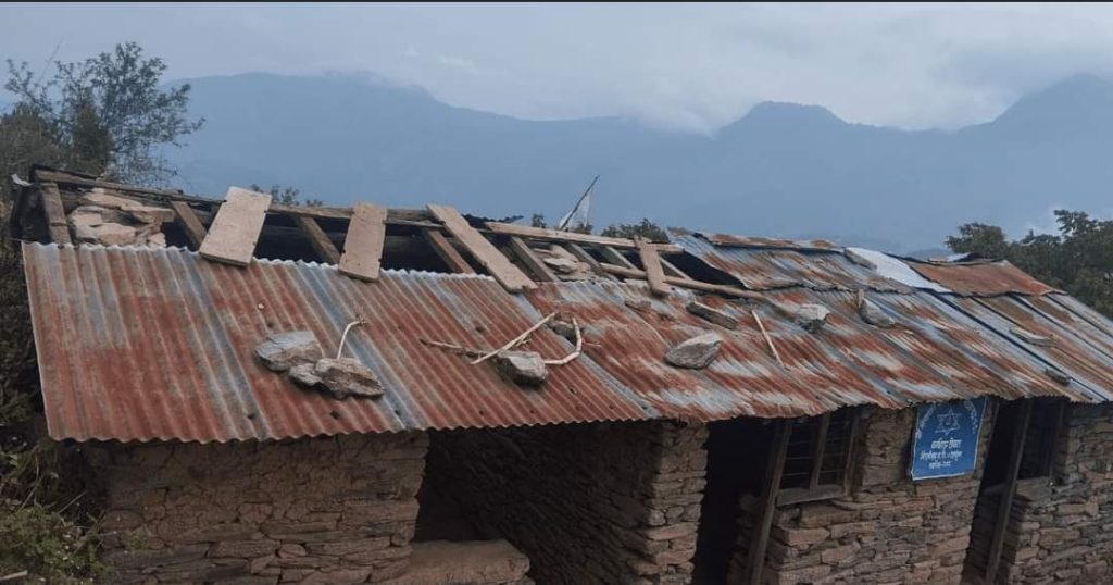 दार्चुलामा हावाहुरीले विद्यालयको छाना उडाएको दुई वर्ष, मर्मत अझै बाकी