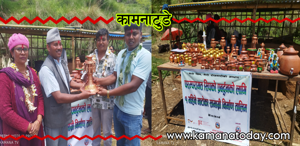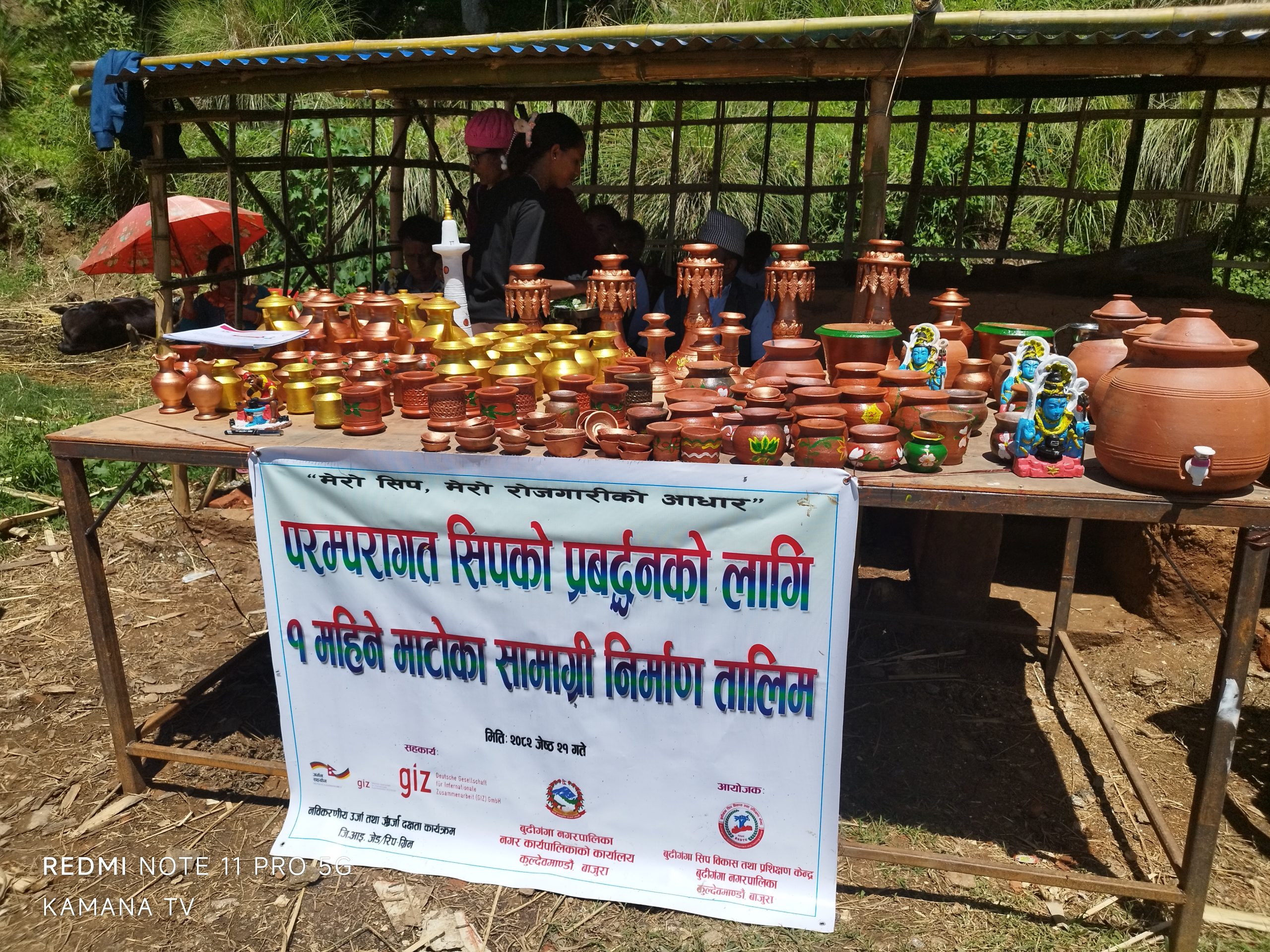 बाजुरा: बुढीगंगा नगरपालिकामा एक महिनादेखि सञ्चालनमा रहेको माटोका भाँडाकुँडा बनाउने सीपमूलक तालिम हिजो एक कार्यक्रमका बीच समापन गरिएको छ । बुढिगंगा नगरपालिका सीप विकास तथा प्रशिक्षण केन्द्र र GIZ-RIP Green परियोजनाको आर्थिक तथा प्राविधिक सहयोगमा सम्पन्न उक्त तालिमले स्थानीय युवाहरूलाई आत्मनिर्भर र व्यवसायमुखी बनाउने लक्ष्य लिएको हो ।