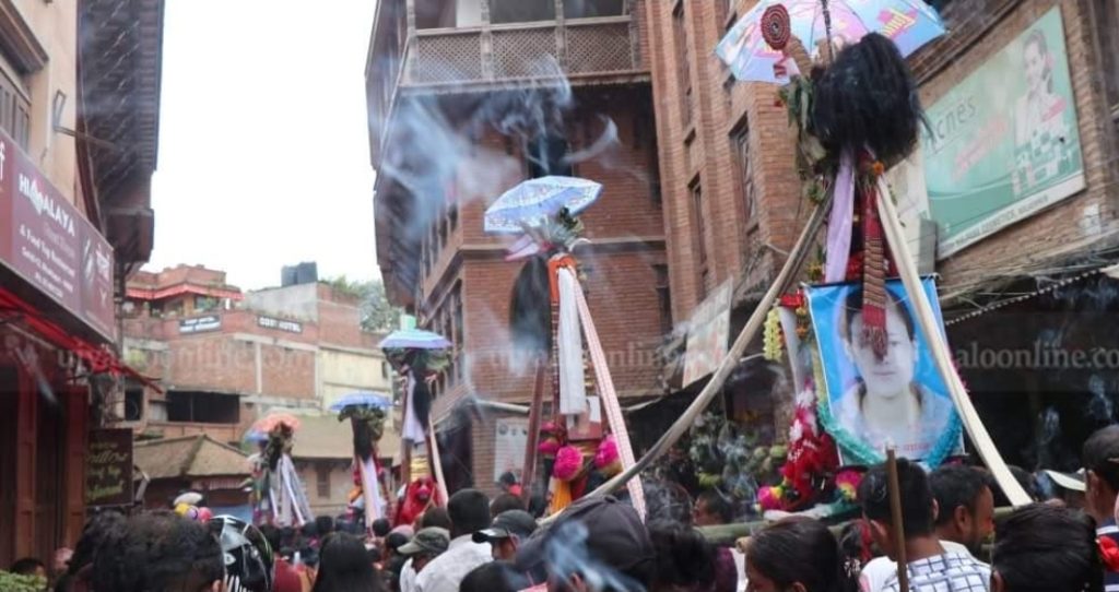 काठमाडौं- काठमाडौं उपत्यकासहित देशका विभिन्न स्थानमा बसोबास गर्ने नेवार समुदाय आज गाईजात्रा पर्व मनाइरहेका छन्। हरेक वर्ष भाद्र कृष्ण प्रतिपदाका दिन मनाइने यो पर्व मृत आत्माको सम्झना, शान्ति र सामाजिक चेतना जगाउने अवसरका रूपमा मनाइन्छ।