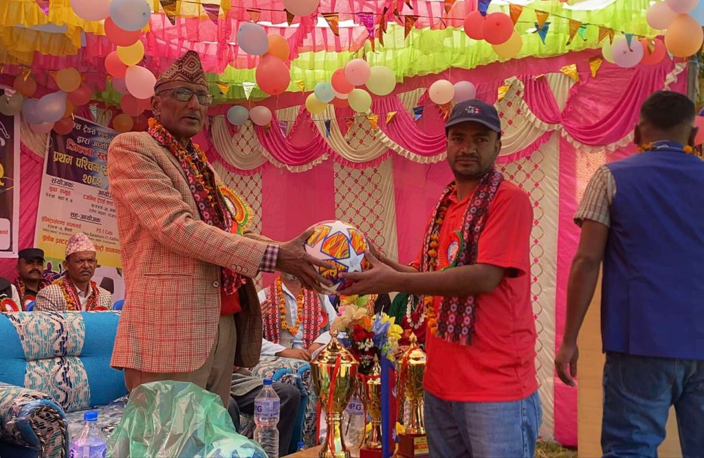 बझाङ । बझाङको जयपृथ्वी नगरपालिका ९ मा रजनिस ट्रेडर्स एण्ड सप्लायर्सद्वारा आयोजित जिल्ला स्तरीय प्रथम पश्चिम सेती कप–२०८२ फुटबल प्रतियोगिता आज एक भव्य समारोहका साथ उद्घाटन गरिएको छ । कार्यक्रम सुरेश खड्का (मारा) को अध्यक्षतामा सम्पन्न भएको हो ।