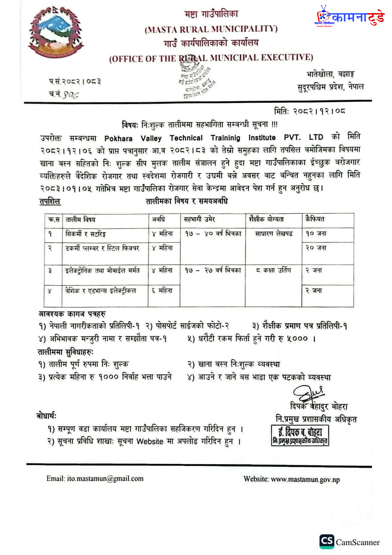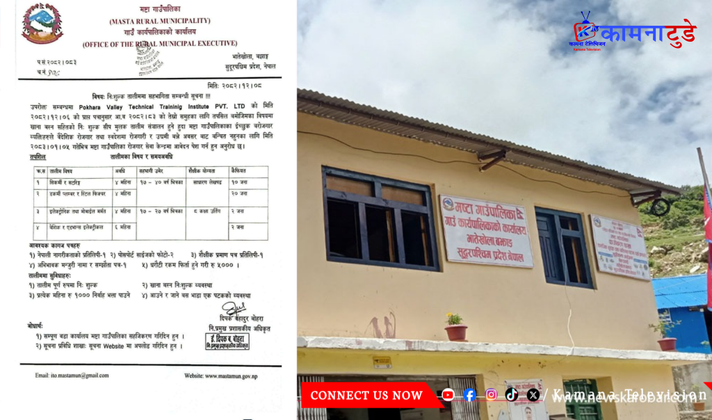 मष्टा गाउँपालिकाद्वारा निःशुल्क सीपमूलक तालिम सञ्चालन, आवेदन खुला