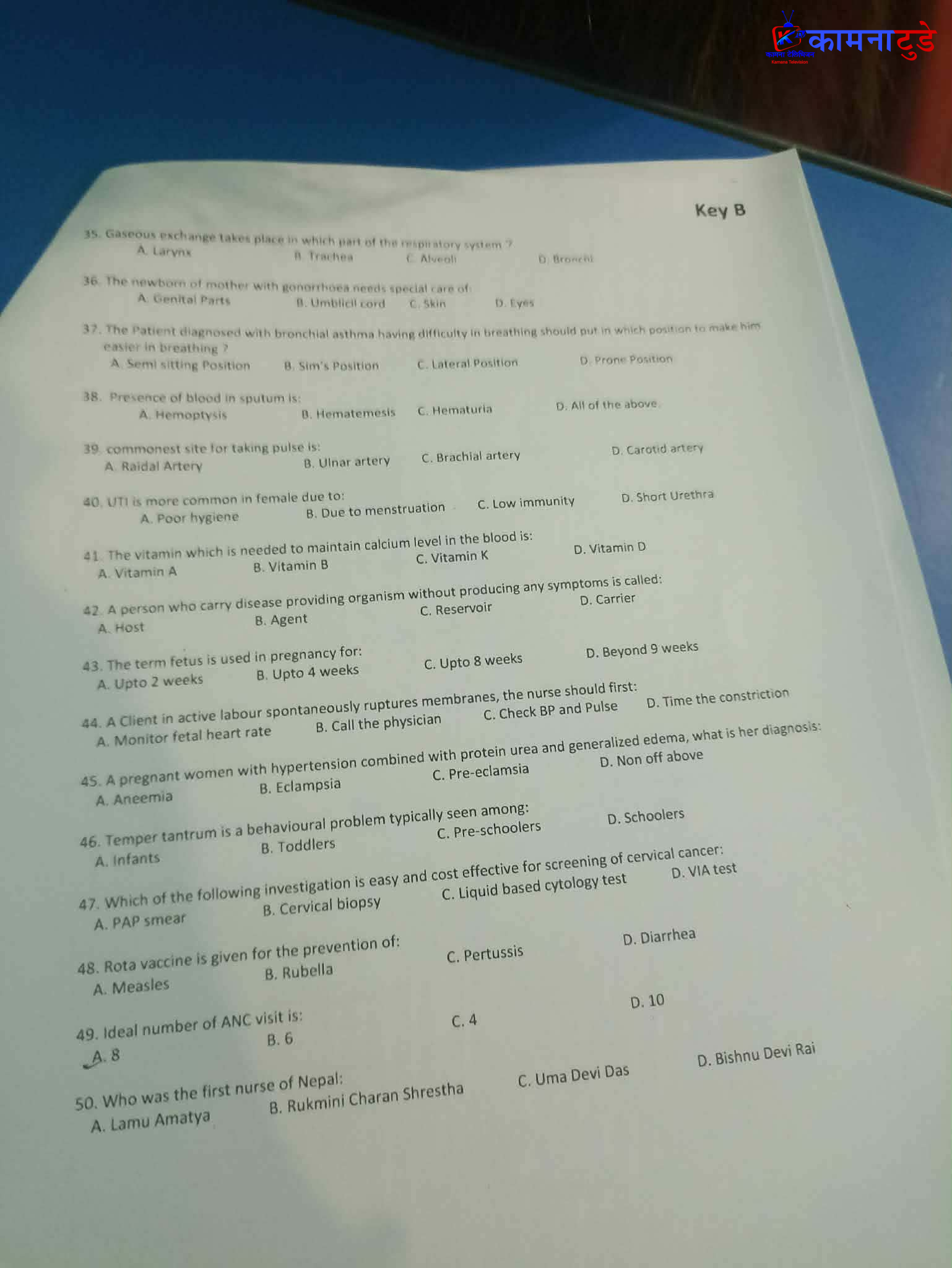 अस्पतालले चैत ७ गते शनिबार स्टाफ नर्स र अनमीको परीक्षा सञ्चालन गरेको थियो। बिहान ९ बजेदेखि स्टाफ नर्स र दिउँसो ३ बजेदेखि अनमीको परीक्षा लिइएको थियो। तर स्रोतका अनुसार अनमीतर्फको प्रश्नपत्र टिकमार्कसहित परीक्षा सुरु हुनु अघि नै बाहिरिएको दाबी गरिएको छ।