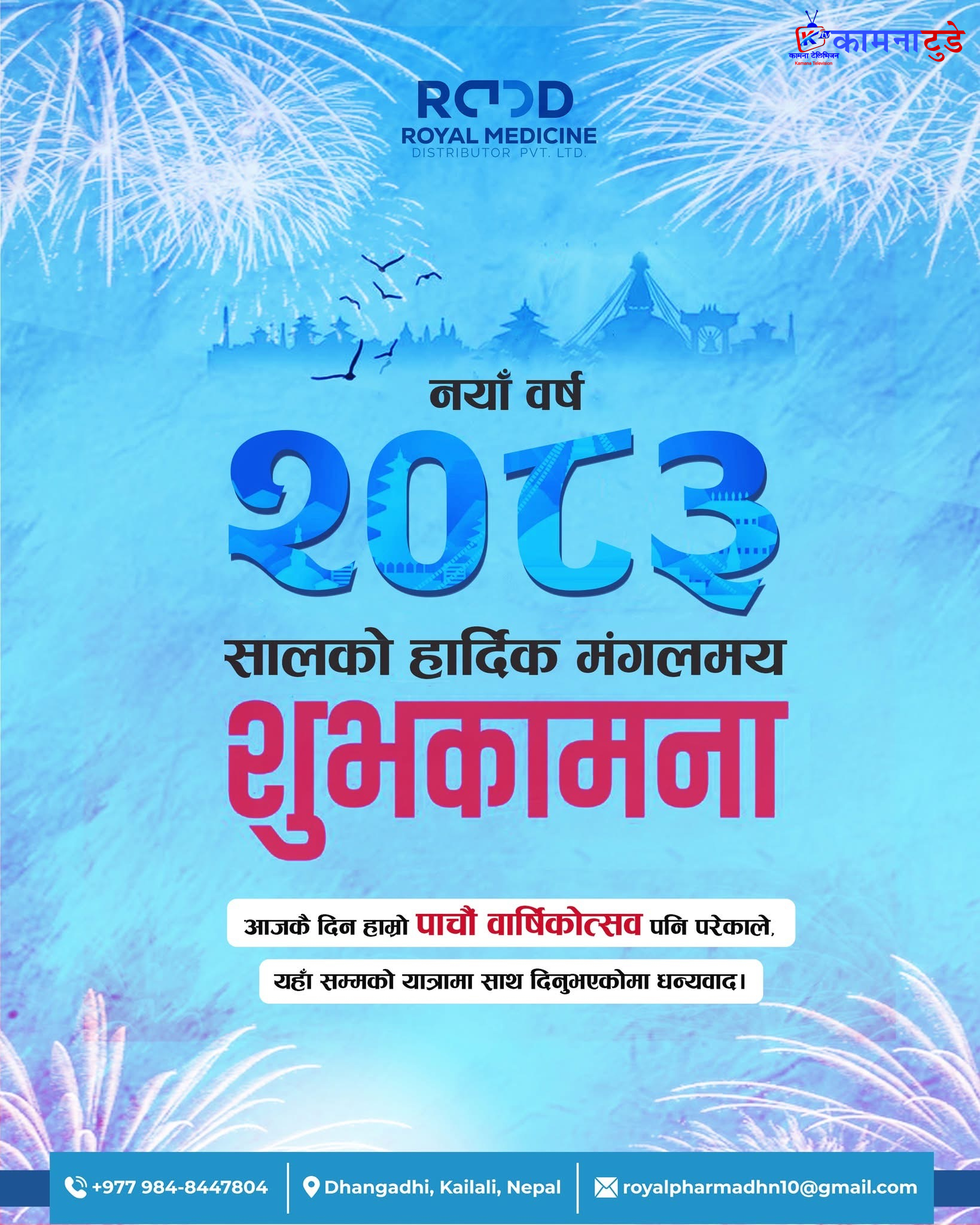 धनगढी, कैलाली — नयाँ वर्ष २०८३ को अवसर पारेर रोयल मेडिसिन डिस्टृब्युटर्स प्रा. लि. ले आफ्नो पाँचौँ वार्षिकोत्सव भव्य रूपमा सम्पन्न गरेको छ।